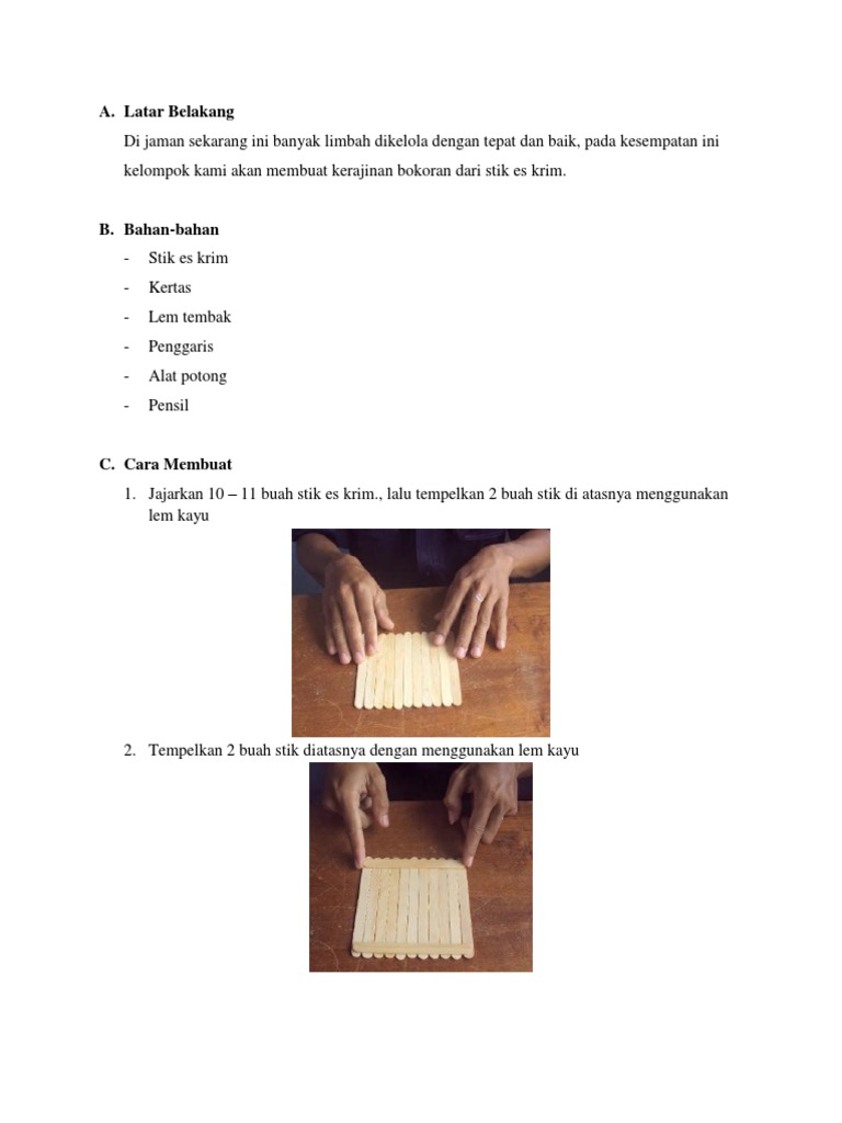 Cara Membuat Kerajinan Tangan Dari Stik Es Krim Yang Mudah Membuat Itu from s3.bukalapak.com Kerajinan miniatur rumah dari stik es krim ini sangat populer di kalangan masyarakat khususnya pelajar, karena setiap tugas prakarya disekolah pasti banyak yang membuat. Kotak pensil dari stik es krim dan bekas kemasan teh celup. Video kali ini saya membuat tempat pensil dari stik es krim, untuk cara membuatnya simak atau tonton videonya ya. Alat dan bahan yang harus disiapkan cara membuat kolakopi, kolak dengan kuah kopi. Nah, ini mungkin dapat menjadi salah satu alternatif prakarya yang dapat kamu buat dalam waktu singkat dan pengerjaannya sangat mudah. Tinggal siapin stik es krim, lem, sama hiasan. Cara membuat bunga ini sangatlah mudah, hanya tinggal mengecat warna kuning stik es krim yang akan kamu pasang, kemudian rekatkan pada triplek yang berbentuk bulat dan sudah di warna coklat. Untuk cara membuat kotak penyimpanan kerajinan dari stik es krim memang terbilang sangatlah sederhana, dan cara pembuatanya hanya perlu cukup menyilangkan stik es krim saja.